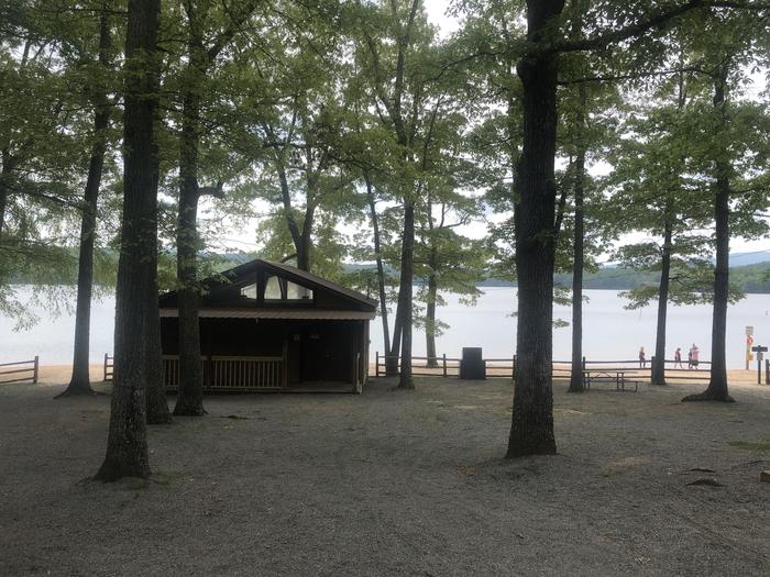 The campground offers campsites available for tent and RV camping. Several walk-in sites are for tents only. Some sites are available on a first-come, first-served basis. Each site is equipped with tables and campfire rings with grills. Accessible showers and drinking water are also provided. Beach access includes a designated swimming area, picnic tables, outdoor showers and trash collection bins.